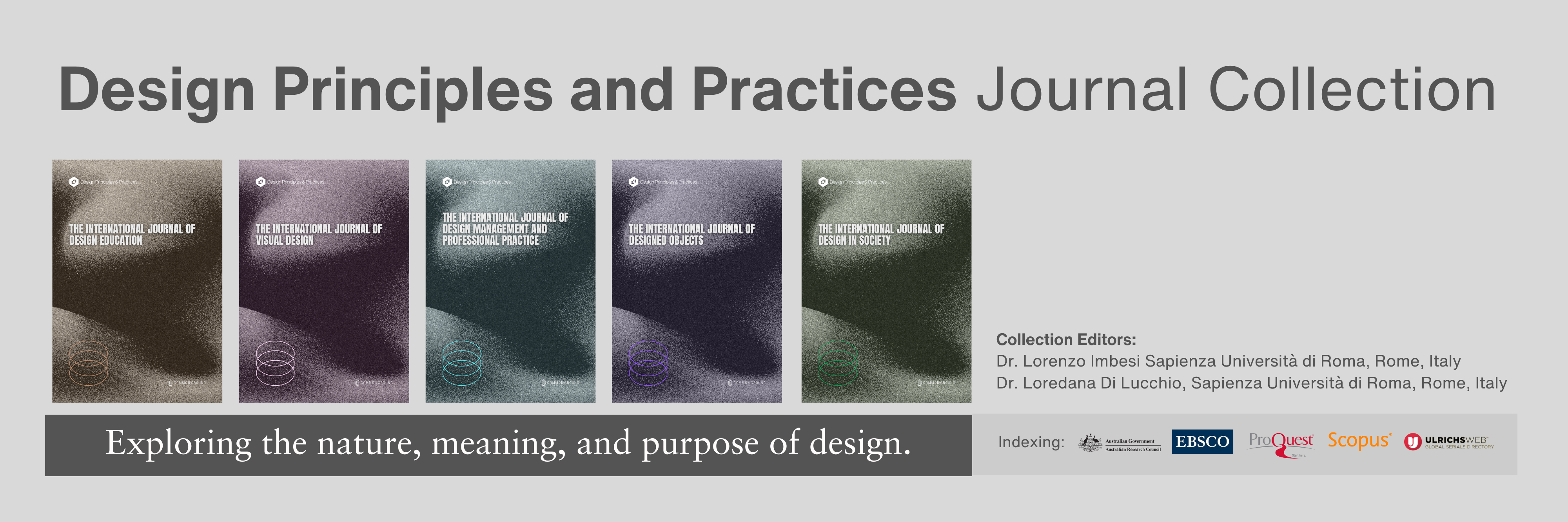We are committed to expanding the visibility, reach, and impact of research from the Design Principles & Practices Research Network. Journals in the Design Principles & Practices Journal Collection can be found in numerous databases, accessible via the libraries of institutional subscribers, and in the CGScholar Bookstore for current Research Network Members.